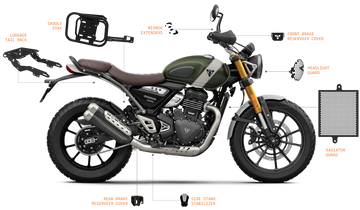Practical and beautiful motorcycle accessories for Triumph Scrambler 400x that combine form and function.