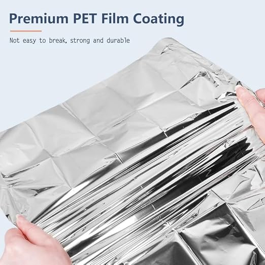 - Size : 210 x 140 cm Compact reflective foil blanket fits most adults for emergency heat retention